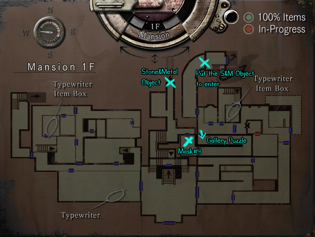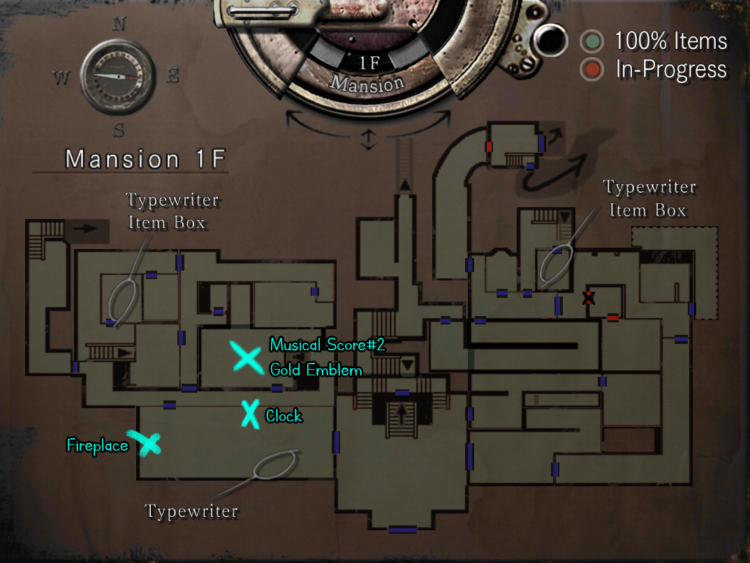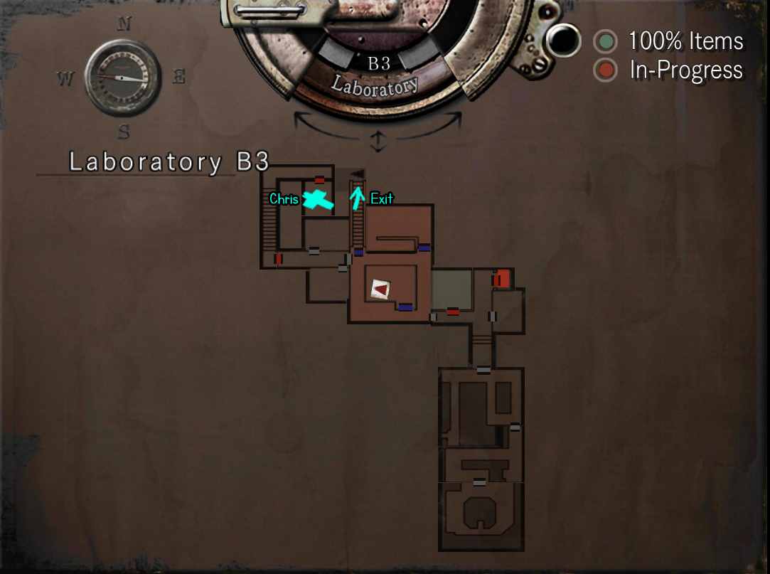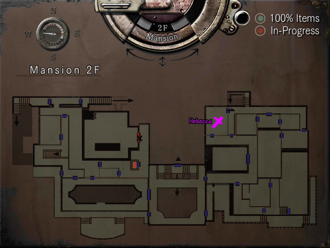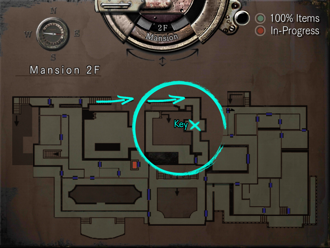 Main HallAfter the cutscene, you'll see that everyone's gone. Go pick up the handgun. Chris only has 6 spaces in his inventory, so you'll have to use the item boxes more than with Jill, and he also doesn't get the Grenade Launcher.
