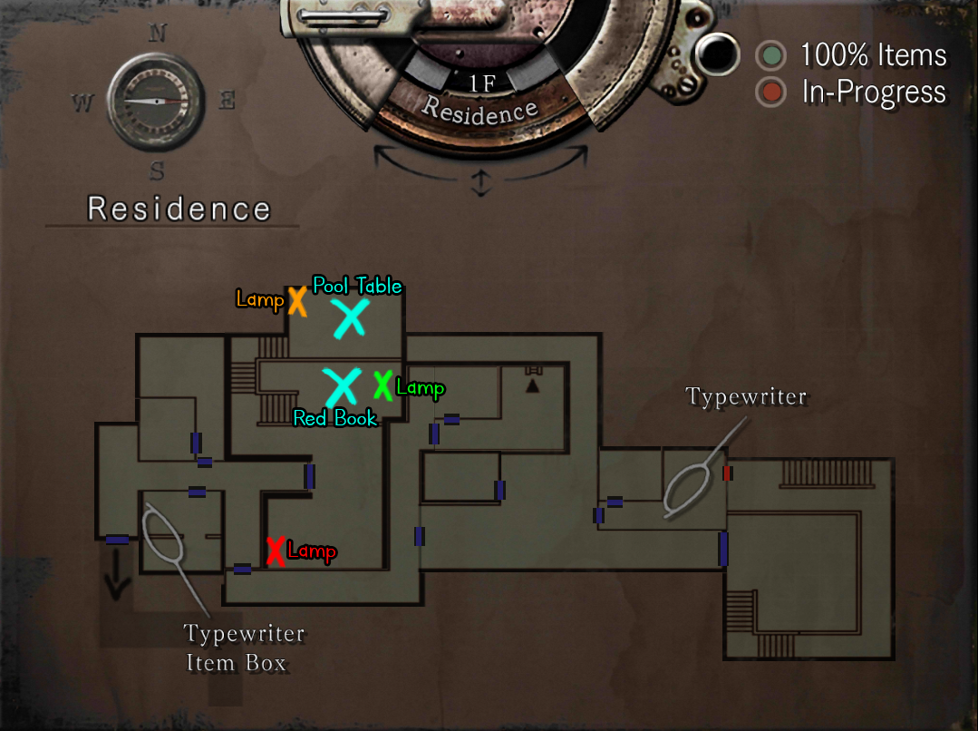 Pick up the first aid spray and ink ribbons. There is also a handgun clip on the small table with the lantern on Easy mode. Pick up the other item in here, the Fuel Canteen. It's empty so go up to the Gas Canister. Each Gas Canister has 4 units of fuel (Normal/Hard) and 6 on Easy. You can put away the knife if you haven't already, and the Chemical. Take a health item if you wish, and take the Old Key from the typewriter. Make sure to have at least 3 inventory spaces free, and my advice would be to not carry any health because you'll be coming up on some more, just make sure to be on Fine. Now go and burn the zombie corpses. Head back up the stairs and come towards the camera. Go down the short hall and enter the door, preparing for a zombie attack (Normal/Hard). When you're through, there will be a zombie in the way of where you need to go. Avoid it or kill it, just run to the other end of the hallway and past the other zombie and into the main hall. Go into the hallway where you saw the first zombie in the game and then go down the stairs and unlock the door and discard the Sword Key. Get the Old Key in the kitchen along with anything else. A zombie is on the floor and another will come from above when you try to leave so avoid them and run up the stairs. Head back through the dining room to the main hall and then go through the upper floor dining room and then into the stair room with the safe room at the bottom.