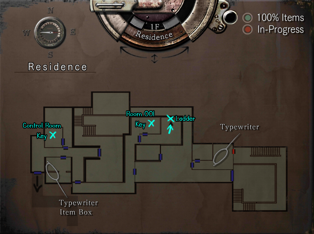 control room puzzle. Then pick up gallery key. Then go back upstairs to the residence.